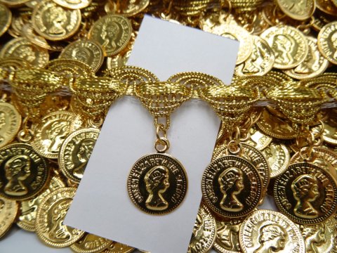 Hiszpańska taśma z cekinami - pieniążkami nazwyana równiez coinami do tańca brzucha, która wydaje dźwięki brzęczy jak przy dźwięku tamburyna czy grzechotki